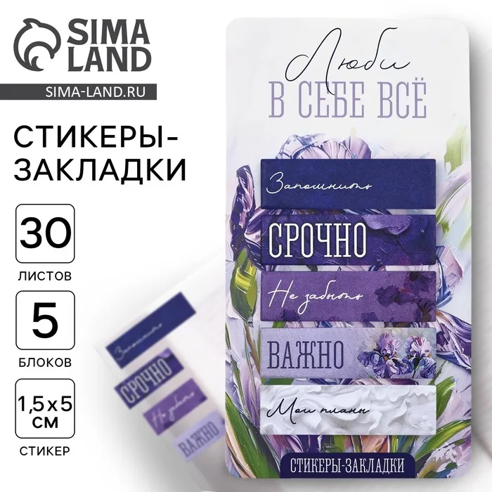 Стикеры-закладки, на подложке «Люби в себе всё», 5 шт., 30 л/шт — Характеристики