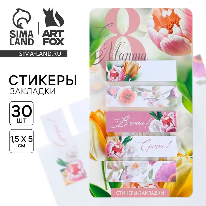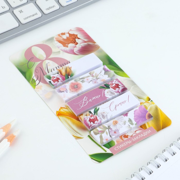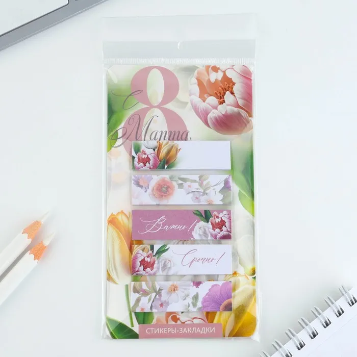 Стикеры-закладки, на подложке «С 8 Марта.Цветы», 5 шт., 30 л/шт — Характеристики