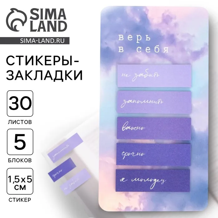 Стикеры-закладки, на подложке «Верь в себя» 5 шт, 30 л — Характеристики