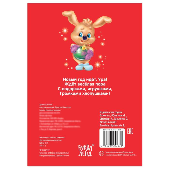 Стихи для малышей «Приходи, Новый год» — это яркий сборник праздничных стихотворений, которые создают атмосферу волшебства и радости. Страницы с красочными иллюстрациями и простыми для запоминания строчками познакомят ребёнка с новогодними традициями и персонажами.