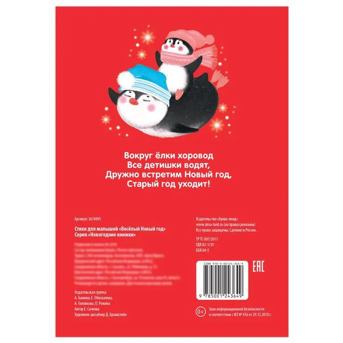 Сборник помогает создать праздничное настроение и погрузить малыша в атмосферу Нового года. Читая вместе с ребёнком стихи, вы не только проводите время с пользой, но и знакомите его с традициями праздника. Красочные иллюстрации делают каждое стихотворение ещё более живым и запоминающимся. Благодаря мягкому переплёту, книга прослужит долго и станет любимым новогодним изданием в вашей домашней библиотеке.