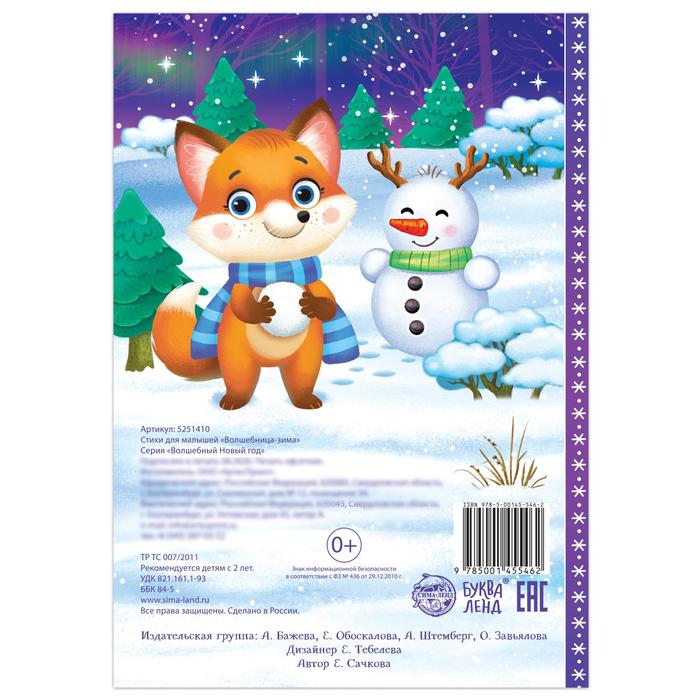 Стихи для малышей «Волшебница-зима» — это яркий сборник, который перенесёт ребёнка в волшебный мир зимы и праздника. Страницы с простыми и запоминающимися стихами и красочными иллюстрациями создают атмосферу радости и уюта.