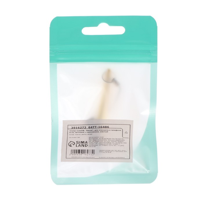 Стилус Luazon, «Капля», для планшета и телефона, 6 см, тепловой, с креплением, жёлтый — Характеристики