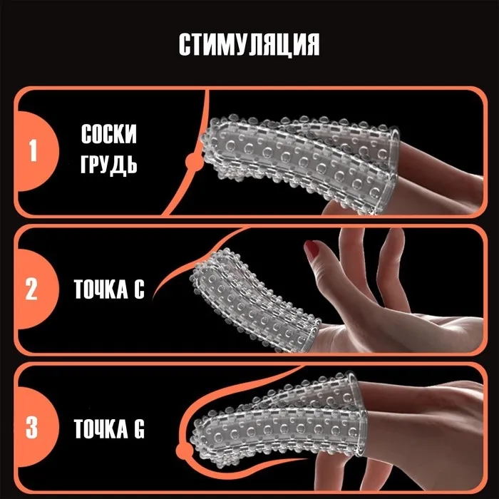 Насадка на палец выполнена из медицинского силикона. Мягкие усики предназначены для дополнительной стимуляции стенок влагалища. Насадку можно надевать на палец, так и на вибропулю для усиления ощущений. Перед использованием необходимо помыть игрушку под проточной водой, далее обработать специальным спреем -клинером. Рекомендуется использовать с лубрикантом, дополнительная смазка обеспечит приятное введение игрушки во внутрь.