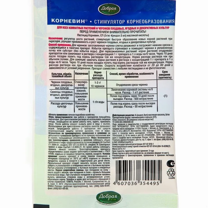 Средство для стимулирования корнеобразования всех комнатных растений и черенков плодовых, ягодных и декоративных культур.