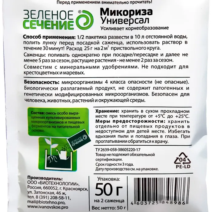 Микориза улучшает приживаемость комнатных цветов и растений, улучшает снабжение растения питательными веществами и водой, усиливает корнеобразование.