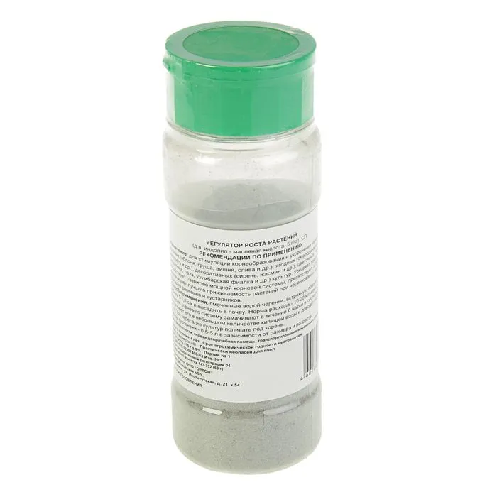 Применение:смоченные водой черенки встряхнуть и погрузить в препарат на глубину 1-1,5 см, затем сразу высадить в почву. При посадке саженцев корневую систему замачивают в течение 6 часов в суспензии препарата: растворяют его в небольшом количестве кипящей воды и доводят водой до объема 10 л (норма расхода 1 г/л).