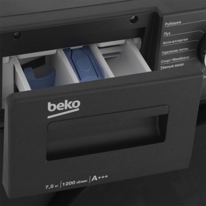 Стиральная машина Beko WSPE7H616A, класс А, 1200 об/мин, до 7.5 кг, чёрная — Характеристики