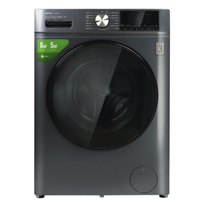 Стиральная машина Centek CT-1954, класс A+++, 1400 об/мин, 8 кг, сушка 5кг, Inverter, серая — Характеристики