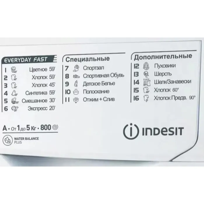 Стиральная машина Indesit EWSB 5085 CIS, класс А, 800 об/мин, до 5 кг, белая — Характеристики