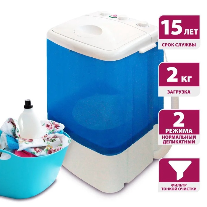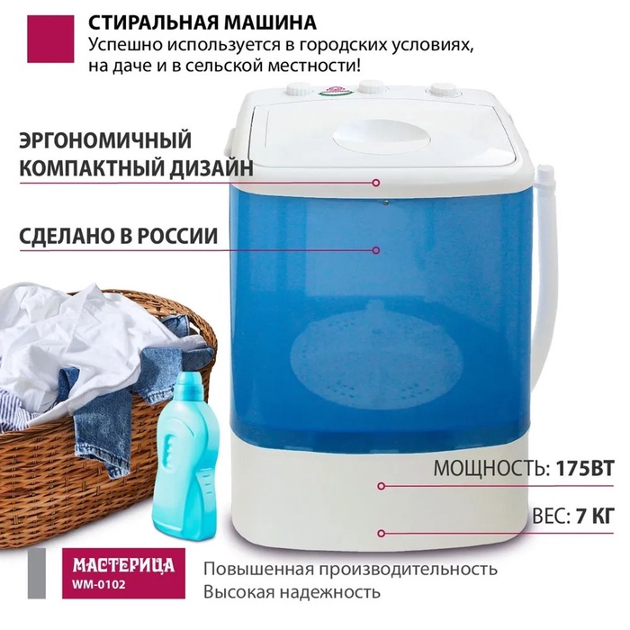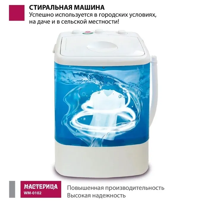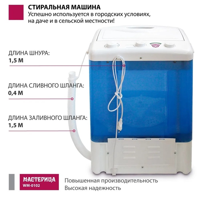Стиральная машина Мастерица WM-0102, 175 Вт, V=23 л, загрузка белья 2 кг, цвет бака синий — Характеристики