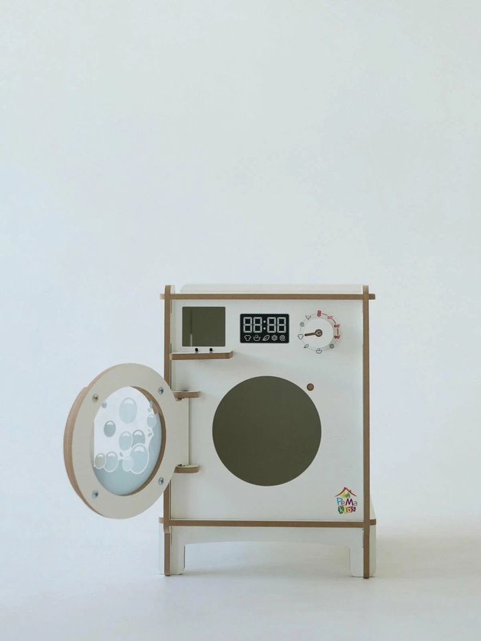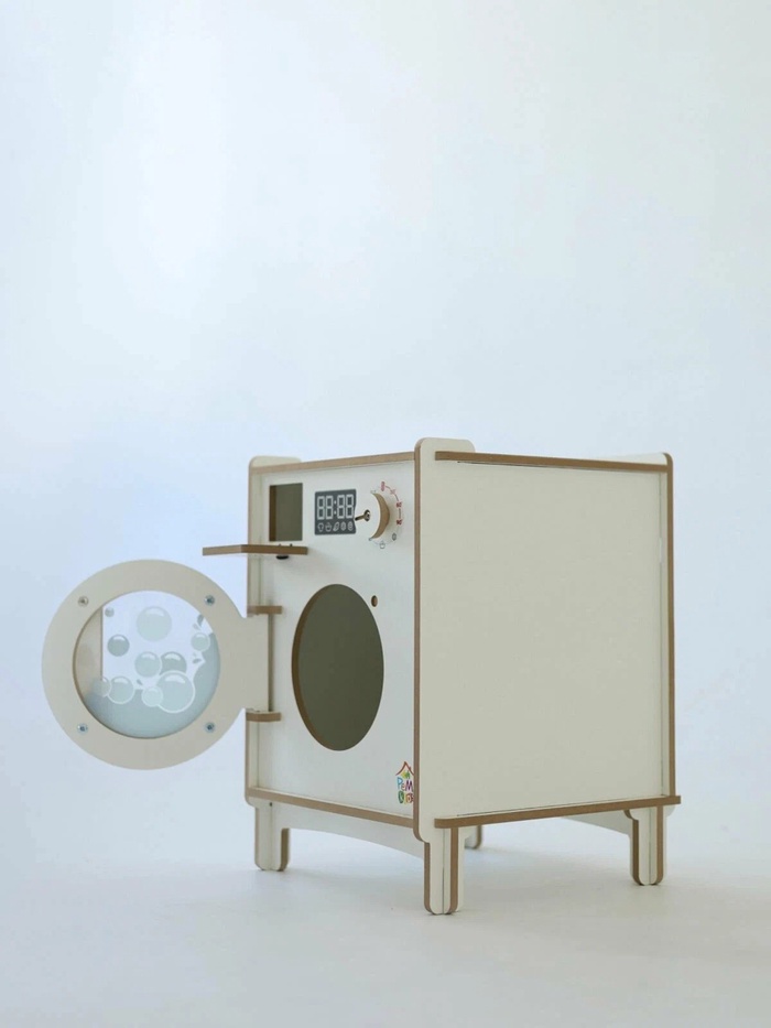 - Интерактивный процесс игры: крутящаяся "дверца" барабана и удобные декоративные элементы помогают ребёнку проигрывать знакомые бытовые сцены. Игровой процесс становится понятным и предсказуемым – ребёнок чувствует уверенность и удовольствие от действий, которые напоминают взрослую жизнь.