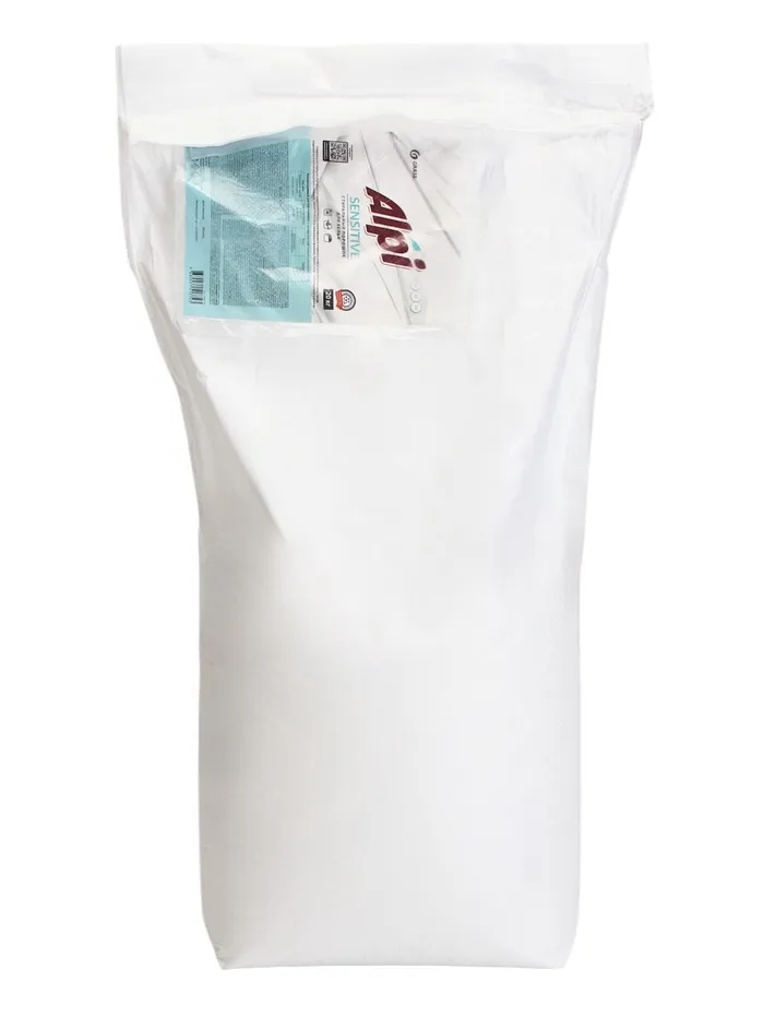 Средство моющее синтетическое порошкообразное Alpi sensitive предназначено для замачивания и стирки белья из хлопчатобумажных, льняных, синтетических тканей, а также тканей из смешанных волокон (кроме изделий из натурального шёлка и шерсти) в стиральных машинах любого типа, профессиональных стиральных машинах(промышленных) и ручной стирки.