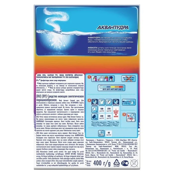 В составе стирального порошка содержатся энзимы, которые позволяют отлично отстирывать даже в холодной воде, а специальные компоненты защищают машину от накипи и известкового налёта.