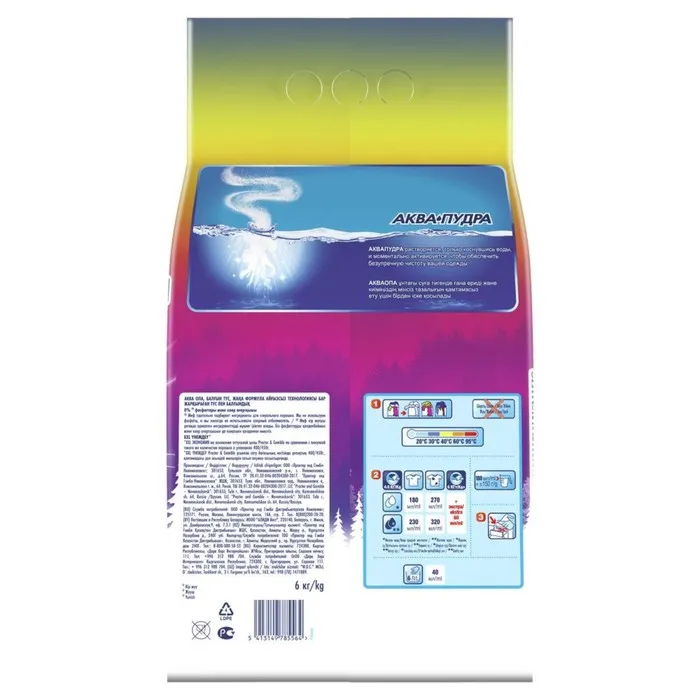 В составе стирального порошка содержатся энзимы, которые позволяют отлично отстирывать даже в холодной воде, а специальные компоненты защищают машину от накипи и известкового налёта.