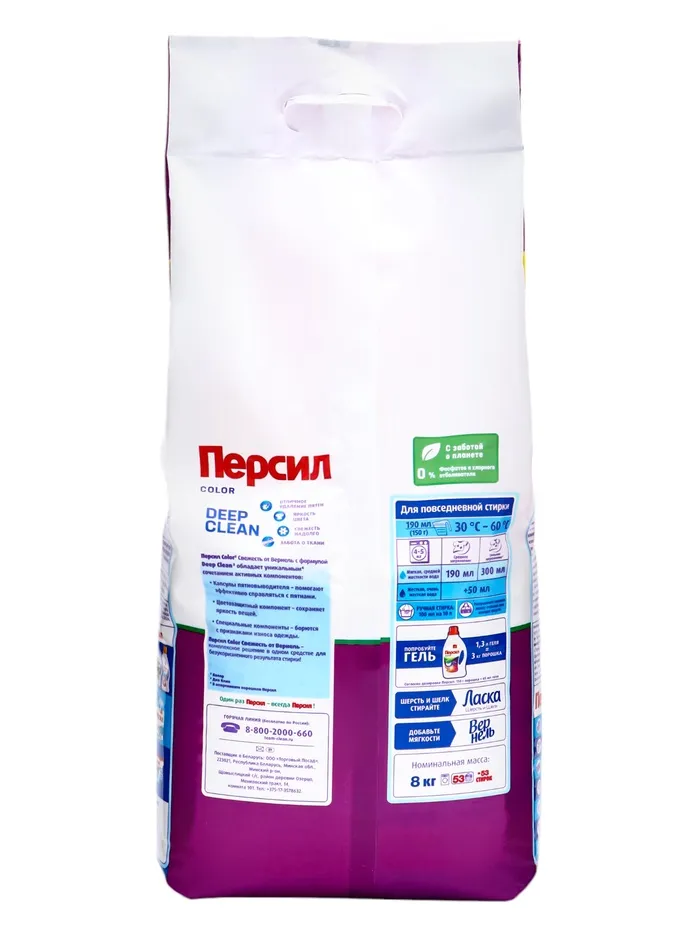Стиральный порошок Персил Color "Свежесть от Вернель" для цветного белья, 8 кг — Характеристики