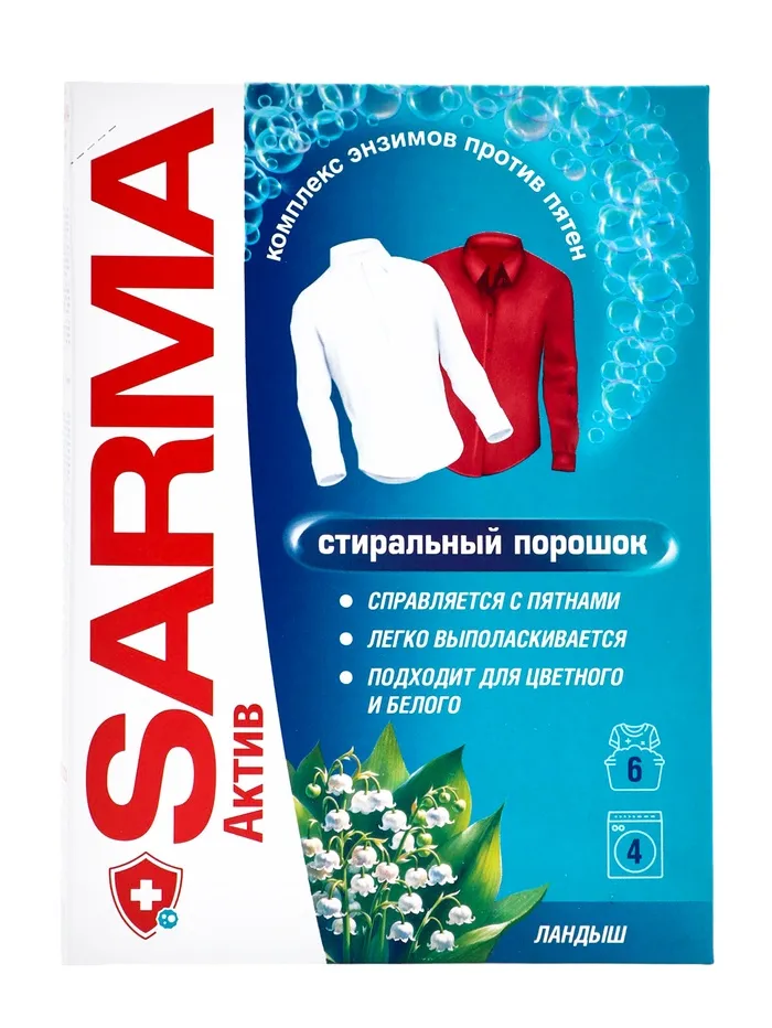 Стиральный порошок Sarma «Ландыш», 5 энзимов против пятен, 400 г — Характеристики