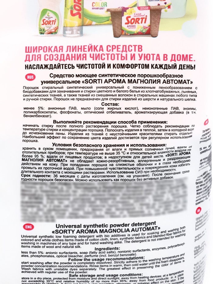 Стиральный порошок Sorti "Арома магнолия", автомат универсальный 2,4 кг