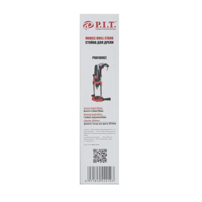 Стойка для дрели P.I.T. P0010002, крепление d=40 мм, регулировка угла и глубины сверления — Характеристики