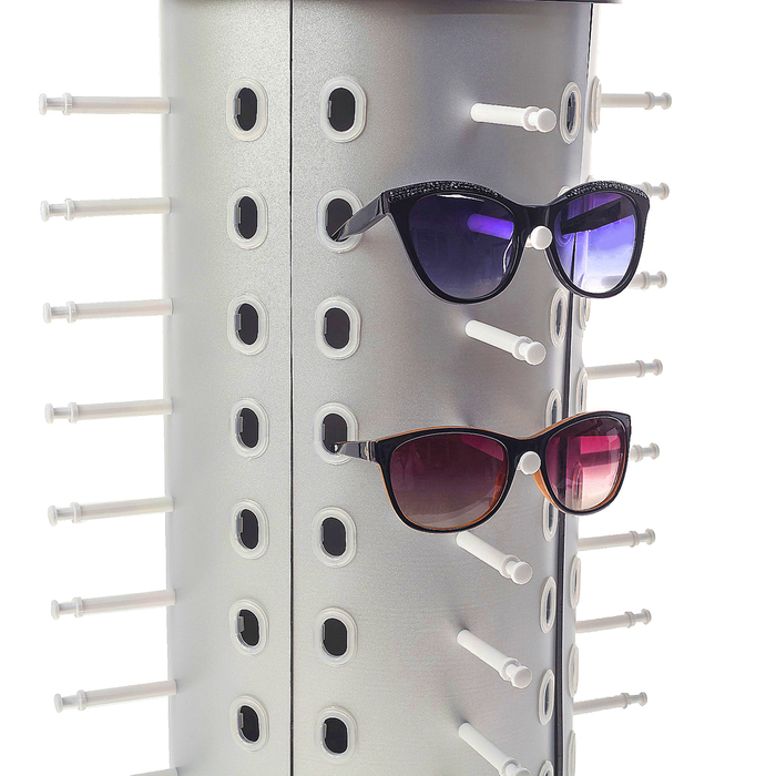 Стойка для очков вращающаяся, 36 мест с зеркалом, 30×30×65 см, цвет серебристый