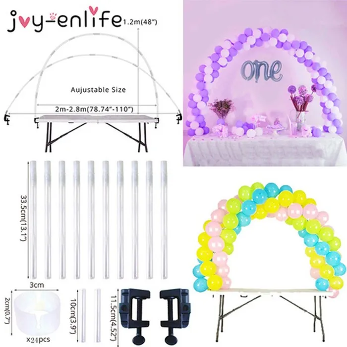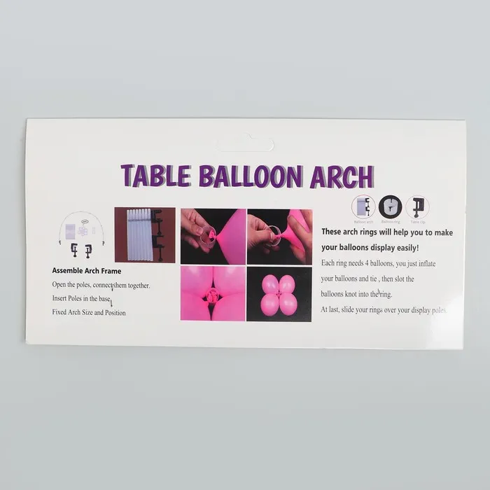 Стойка устанавливается полукругом. Высоту вы определяете самостоятельно. Длина трубочек, соединённых вместе, составляет 3 метра. На стойке можно разместить до 90 шаров диаметром 9‒10 дюймов.