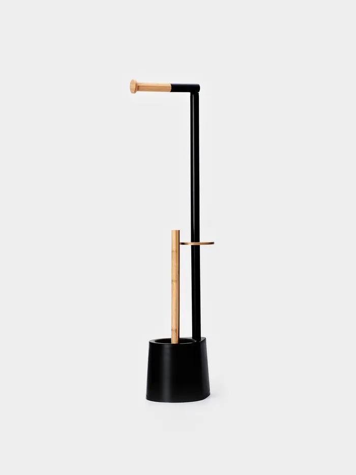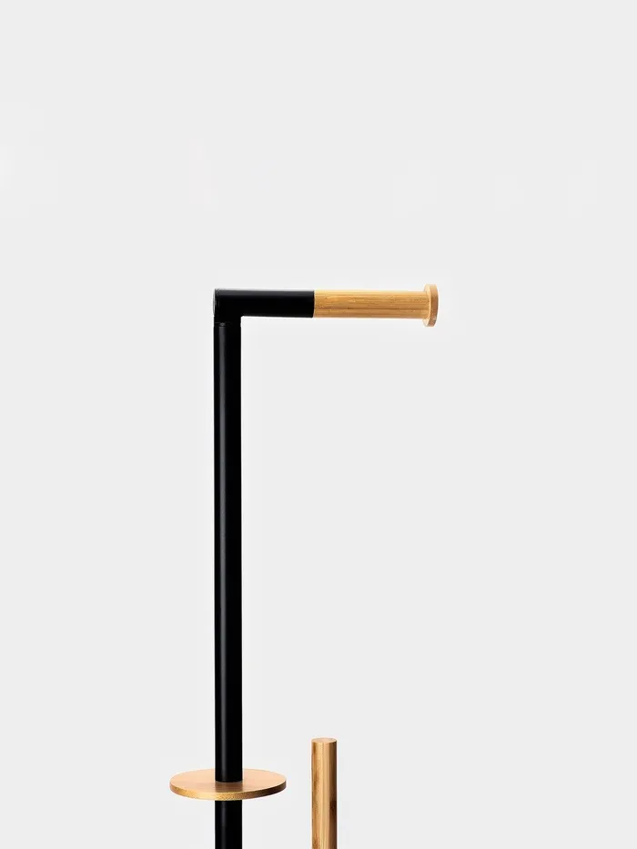 Держатель для туалетной бумаги с ёршиком станет стильным и функциональным дополнением вашей ванной комнаты. Сочетание металла и натурального бамбука создаёт гармоничный дизайн, который подчеркнёт эстетику интерьера. Удобная конструкция обеспечивает лёгкий доступ к туалетной бумаге и ёршику, делая использование максимально комфортным.