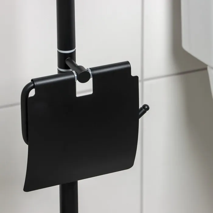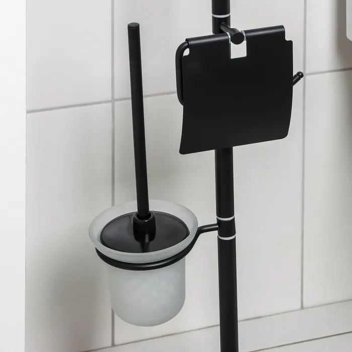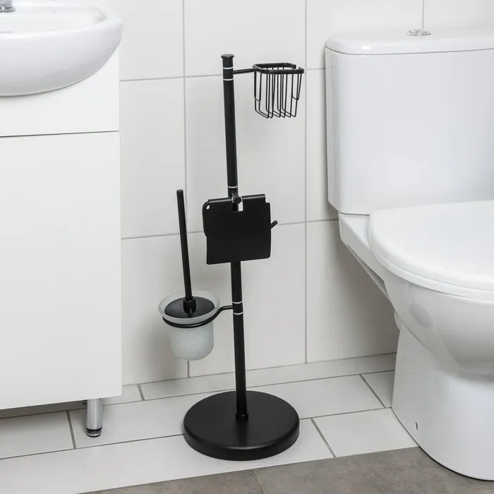 Стойка напольная с держателем для туалетной бумаги, освежителя и ершика, 80 см, цвет чёрный