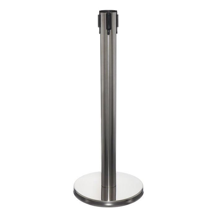 Стойка ограждения серебристая, с синей вытяжной лентой 180 см, высота 90 см, d=6 см, напольный d=32 см