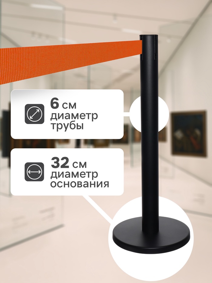 Стойка ограждения черн с вытяжной лентой-180см ОРАНЖЕВ,высота-90см,d- 6см,напольный d-32см — Характеристики