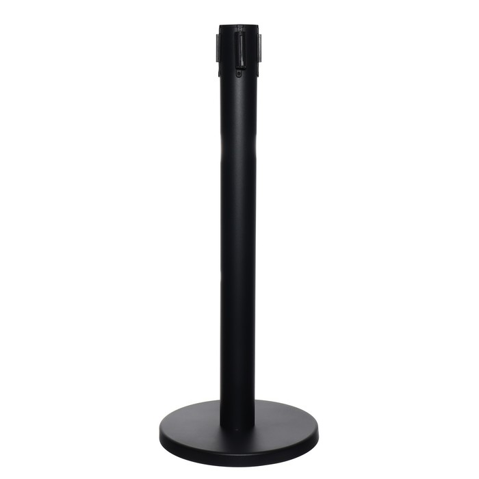 Стойка ограждения чёрная, с красной вытяжной лентой 470 см, высота 90 см, d=11 см, напольный d=35 см