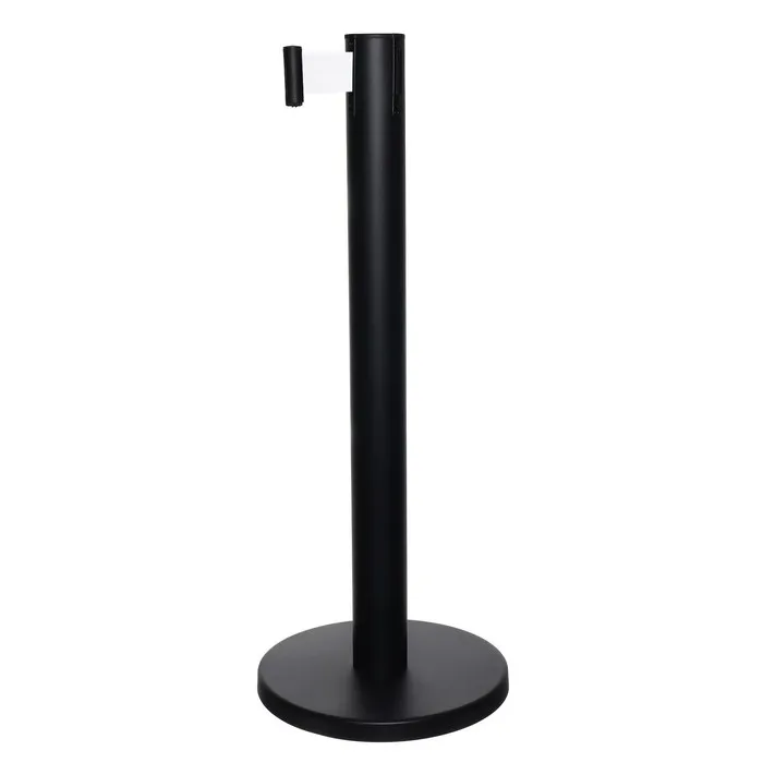 Стойка ограждения чёрная, с белой вытяжной лентой 280 см, высота 90 см, d=6 см, напольный d=32 см — Характеристики