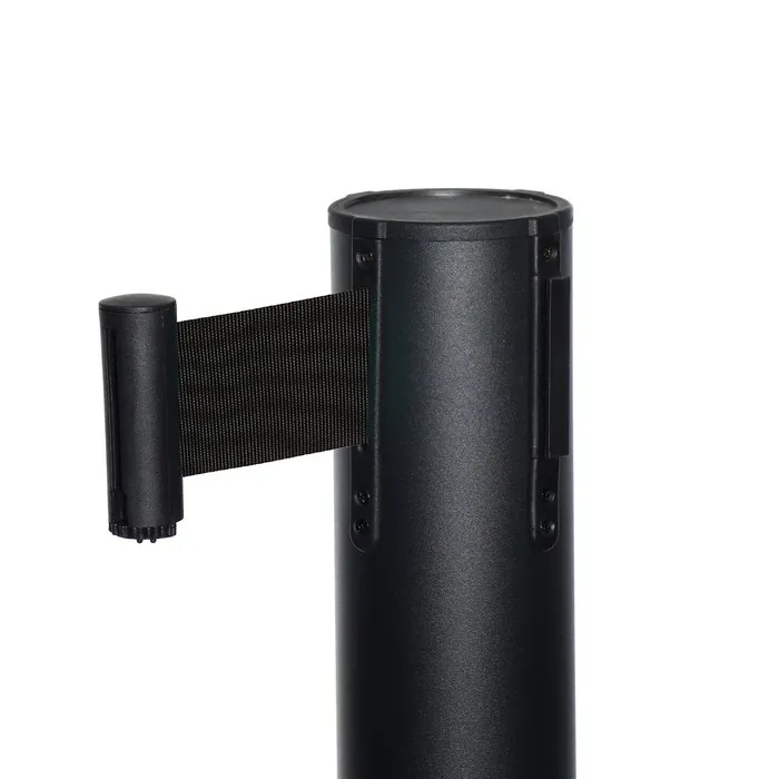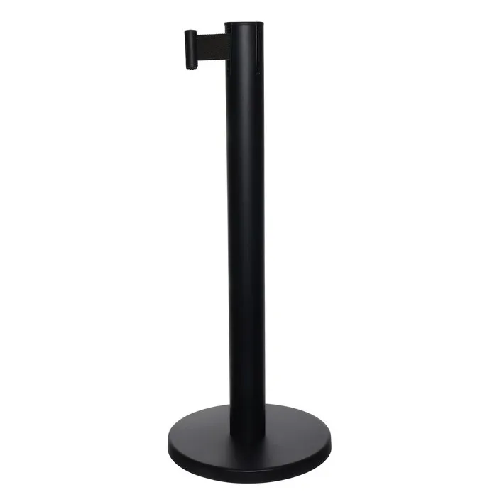 Стойка ограждения чёрная, с чёрной вытяжной лентой 180 см, высота 90 см, d=6 см, напольный d=32 см