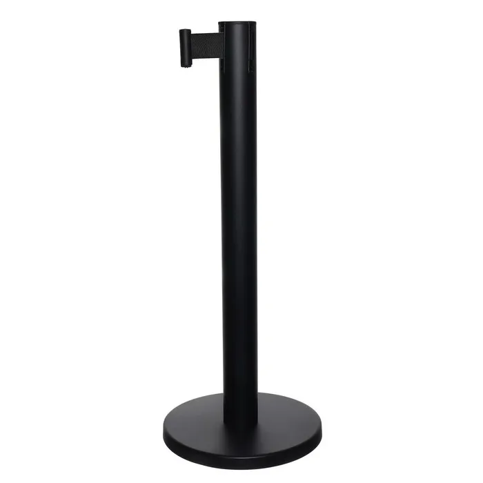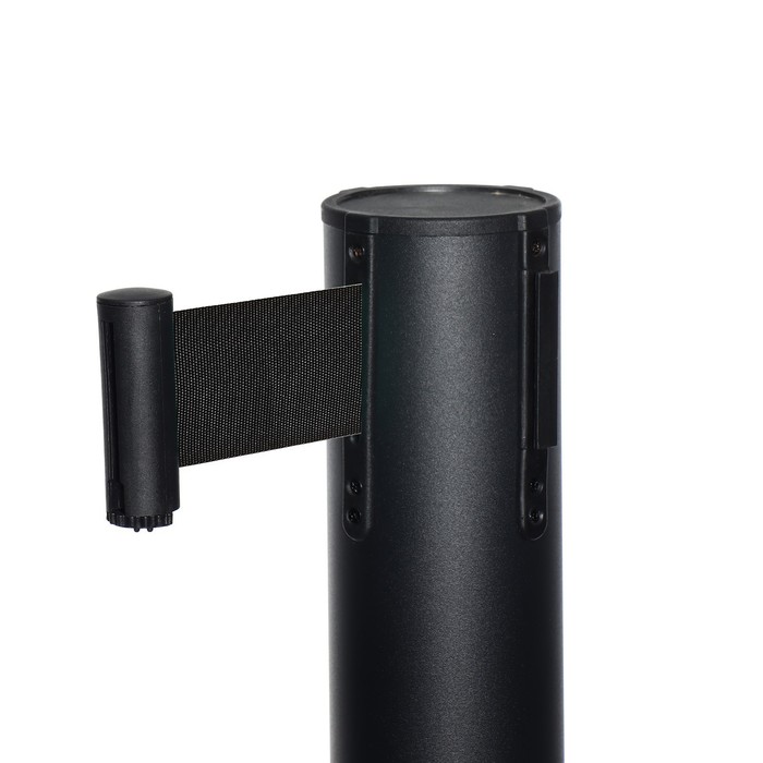 Стойка ограждения чёрная, с чёрной вытяжной лентой 280 см, высота 90 см, d=6 см, напольный d=32 см
