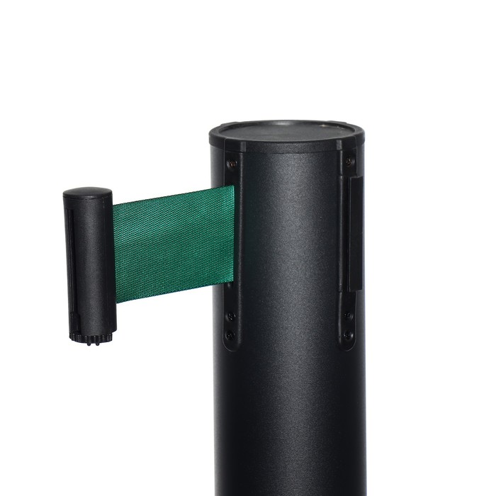 Стойка ограждения чёрная, с зелёной вытяжной лентой 470 см, высота 90 см, d=11 см, напольный d=35 см — Характеристики