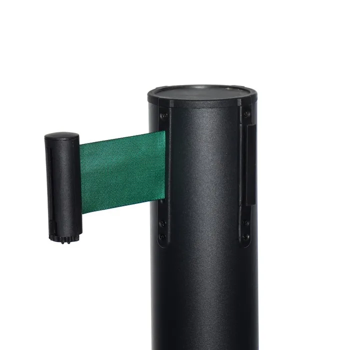 Стойка ограждения чёрная, с зелёной вытяжной лентой 470 см, высота 90 см, d=11 см, напольный d=35 см