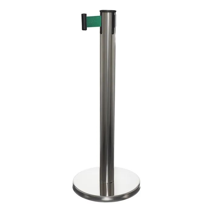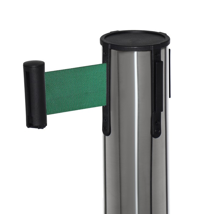Стойка ограждения сер с вытяжной лентой-180см ЗЕЛЕН высота-90см,d- 6см,напольный d-32см — Характеристики