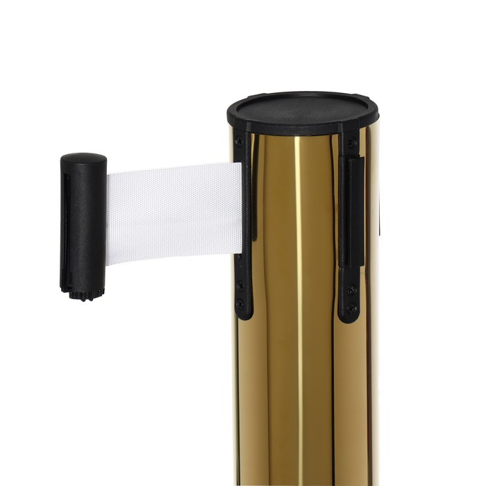 Стойка ограждения золотая, с белой вытяжной лентой 470 см, высота 90 см, d=11 см, напольный d=35 см — Характеристики
