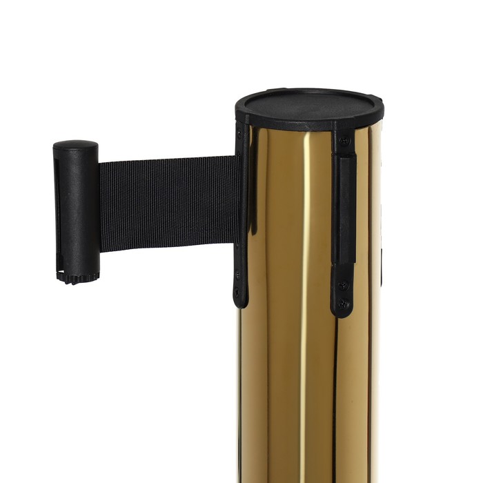 Стойка ограждения золотая, с чёрной вытяжной лентой 470 см, высота 90 см, d=11 см, напольный d=35 см — Характеристики