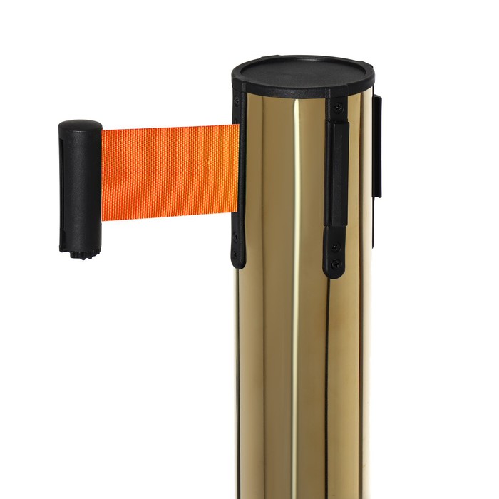 Стойка ограждения золотая, с оранжевой вытяжной лентой 180 см, высота 90 см, d=6 см, напольный d=32 см