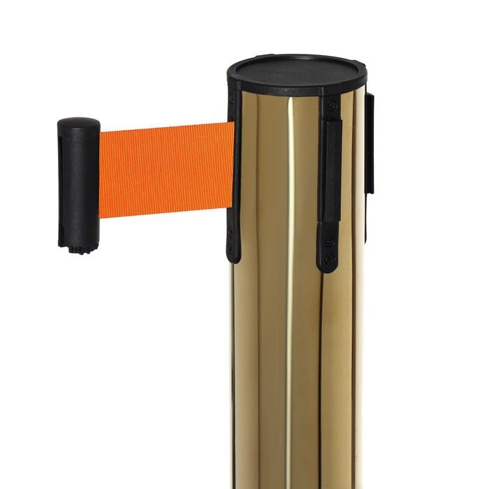 Стойка ограждения золотая, с оранжевой вытяжной лентой 280 см, высота 90 см, d=6 см, напольный d=32 см