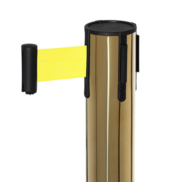 Стойка ограждения золотая, с жёлтой вытяжной лентой 180 см, высота 90 см, d=6 см, напольный d=32 см — Характеристики