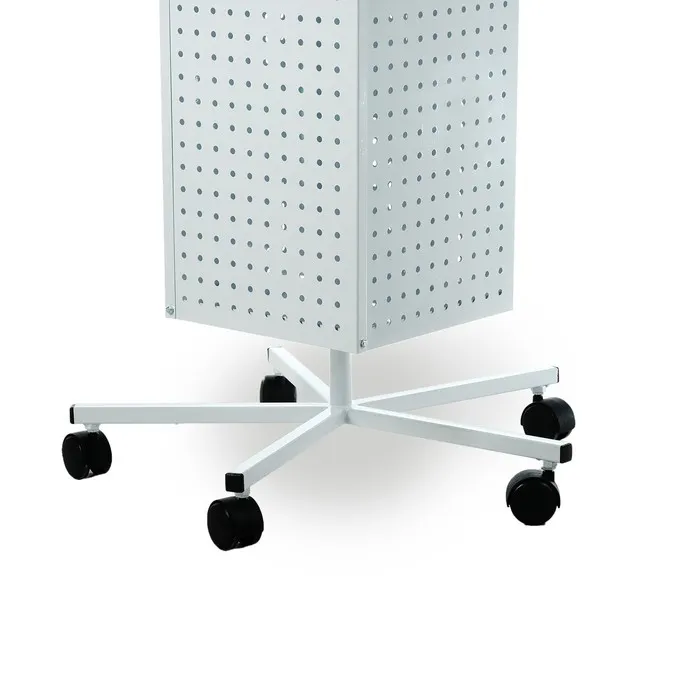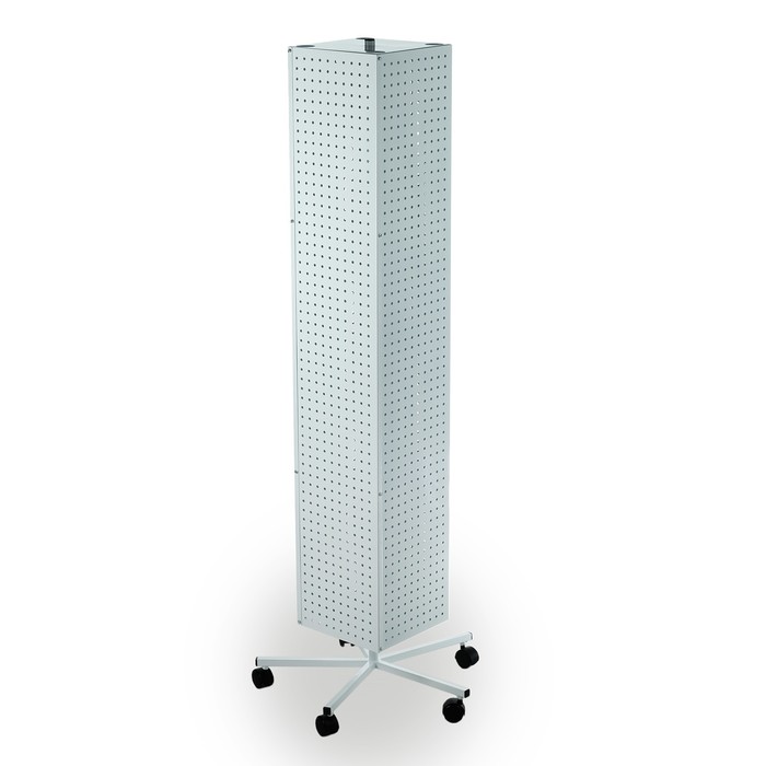 Стойка перфорированная на колёсах, 4 стороны, размер 28×28×170 см, шаг 2,5 см, цвет белый — это практичное и функциональное решение для организации пространства. Эта стойка идеально подходит для магазинов, выставочных залов, офисов или для дома, где требуется удобное и компактное хранение различных товаров или аксессуаров. Благодаря перфорированным стенкам, вы можете легко и надежно размещать различные предметы, подвешивать аксессуары или товары, что делает её идеальной для демонстрации продукции или для хранения.