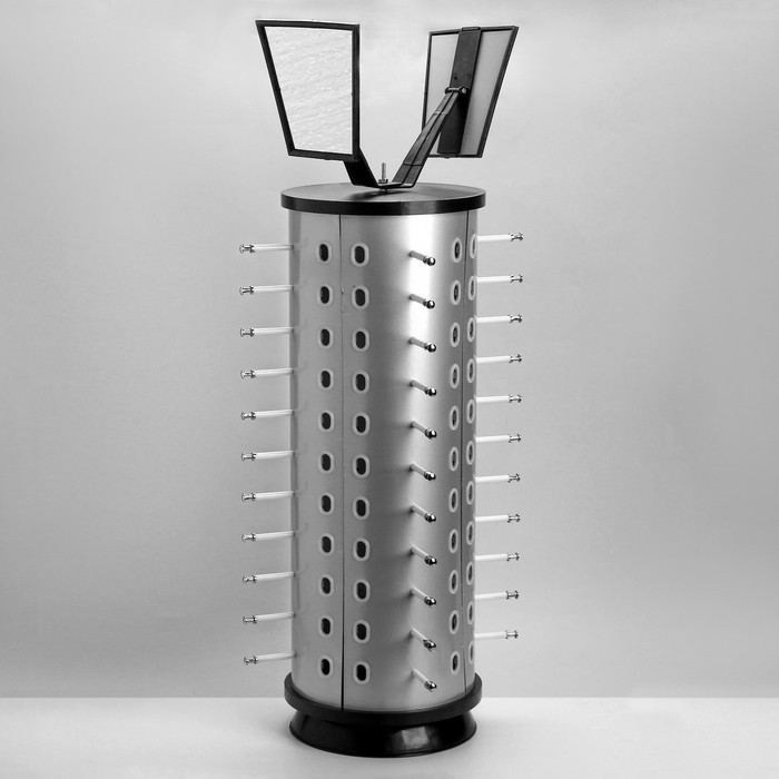 Стойка для очков вращающаяся, 44 места с зеркалом, 38×38×68 см, цвет серебристый