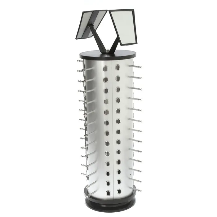 Стойка для очков вращающаяся, 52 места с зеркалом, 38×38×78 см, цвет серебристый