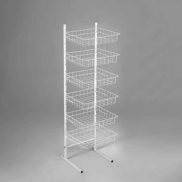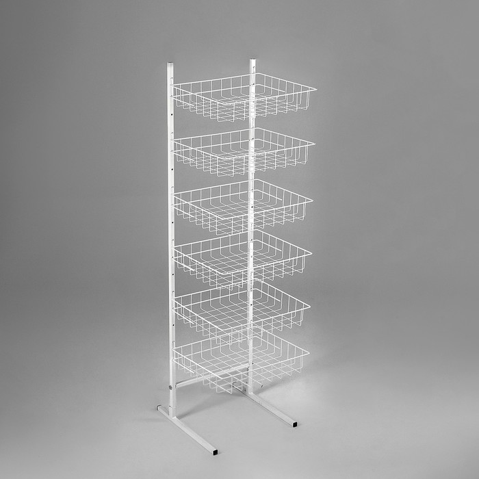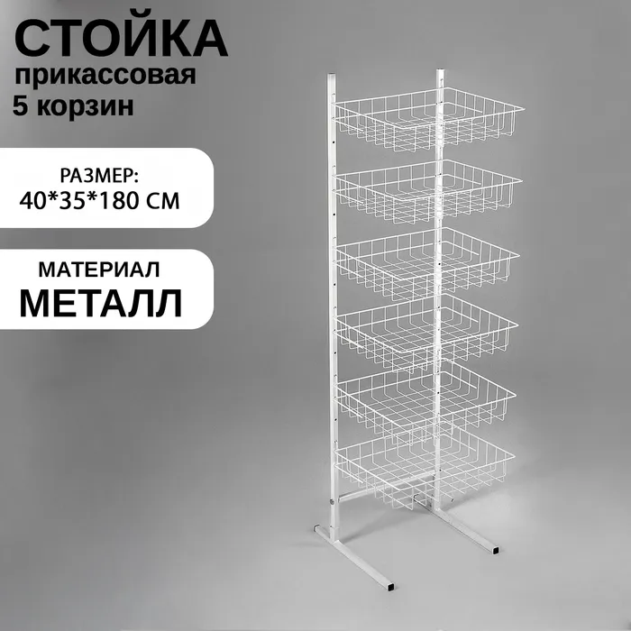 Стойка прикассовая размером 40×35×180 см — идеальное решение для организации пространства в кассовой зоне вашего магазина. Компактные размеры и шесть корзин позволяют удобно разместить товары, акционные предложения и сопутствующие изделия, что значительно упрощает выбор для покупателей.