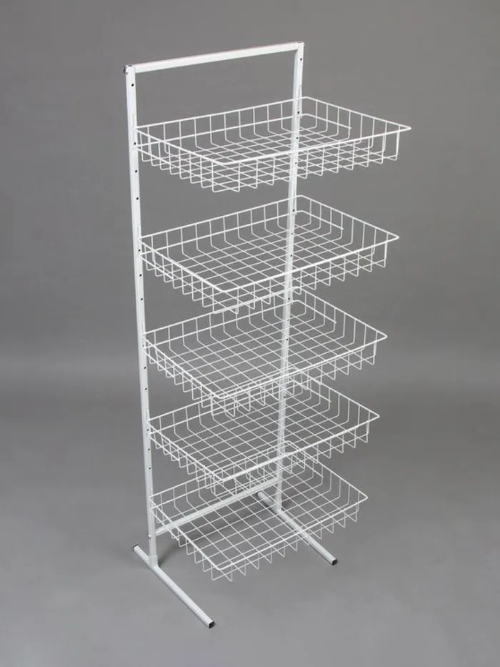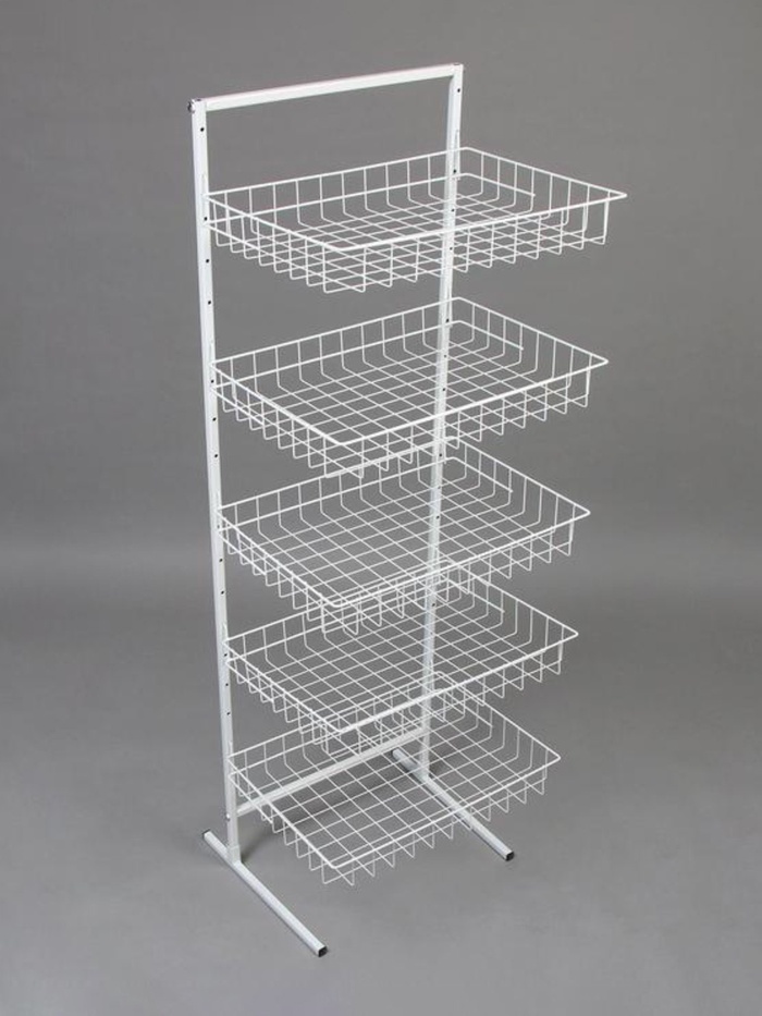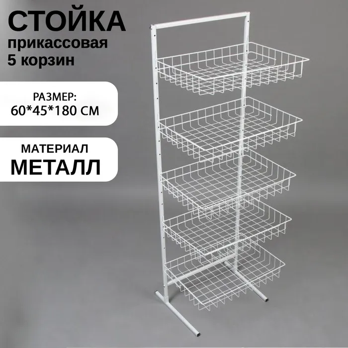Стойка прикассовая размером 60×45×180 см — идеальное решение для эффективной организации пространства на кассе. Она оборудована пятью корзинами, что позволяет удобно разместить различные товары, акционные предложения и сопутствующие изделия, упрощая покупателям процесс выбора.