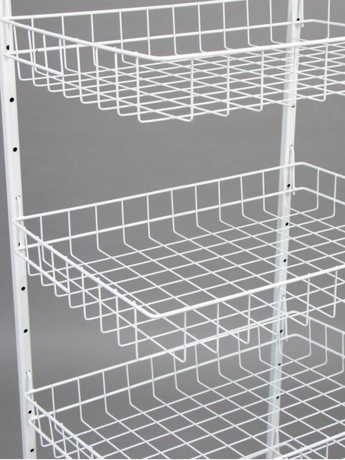 Изготовленная из высококачественных материалов, стойка отличается прочностью и долговечностью. Белый цвет добавляет изделию современный и стильный вид, позволяя легко вписать её в любой интерьер магазина.