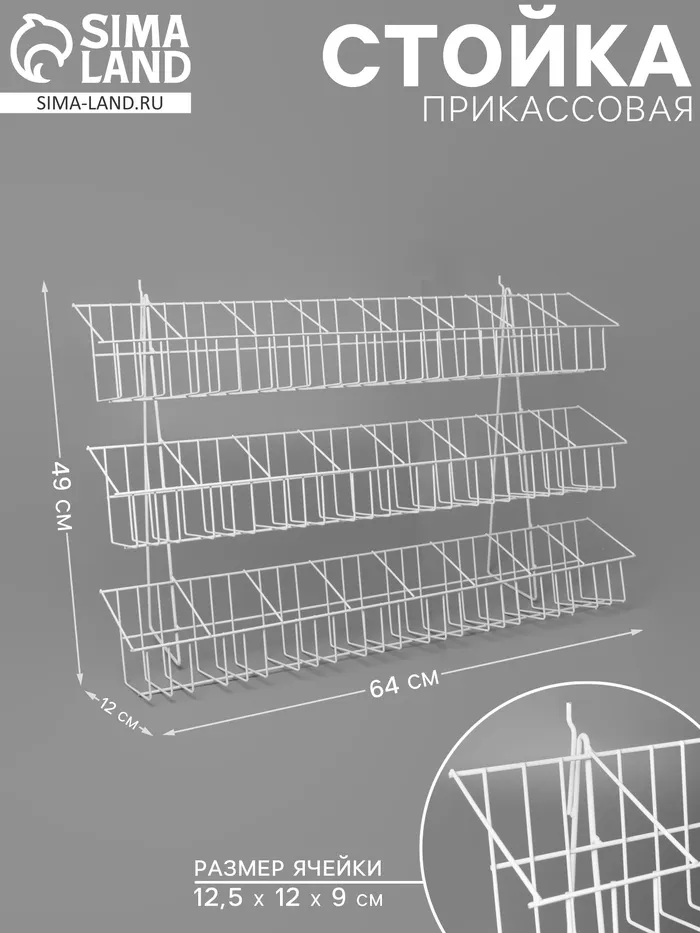 С размером ячейки 12,5×12×9 см, стойка идеально подходит для размещения различных аксессуаров, канцтоваров или сопутствующих товаров. Это помогает не только организовать пространство, но и увеличить видимость товаров, что может способствовать росту импульсных покупок.