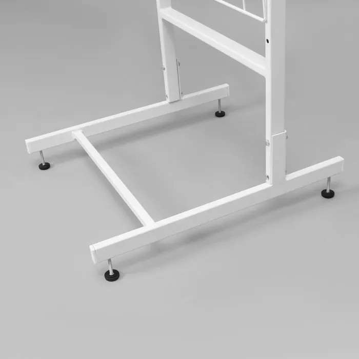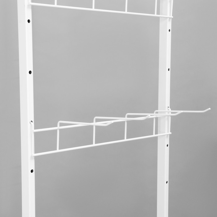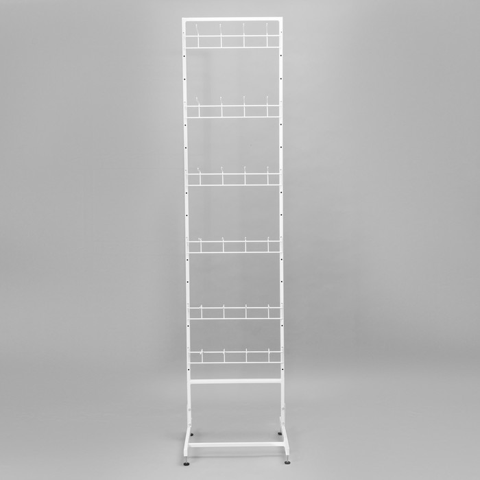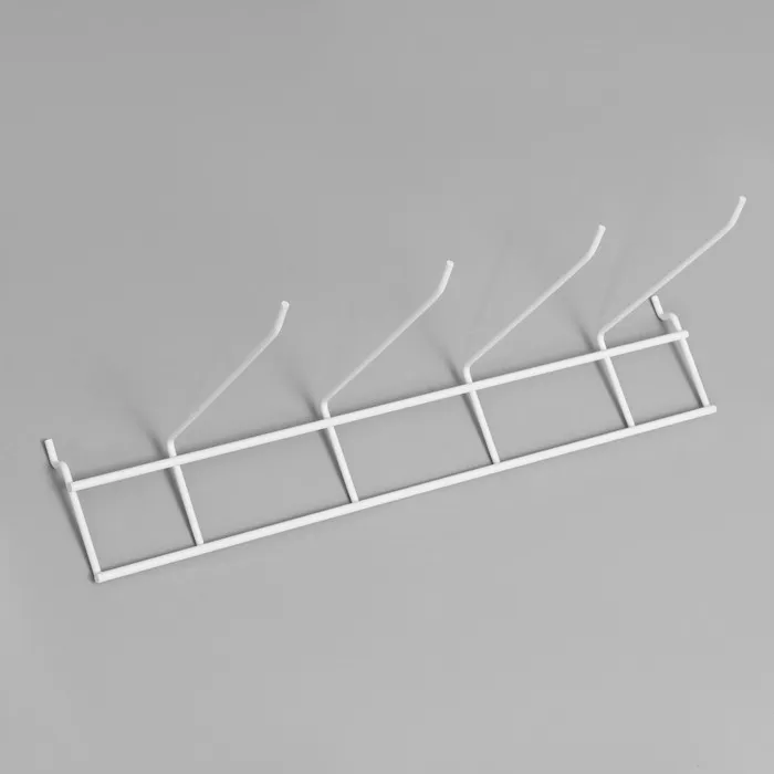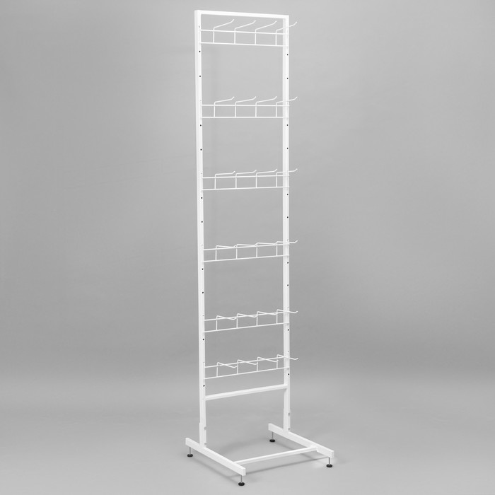 Белый цвет стойки придаёт элегантный и современный вид, позволяя ей гармонично вписаться в любой интерьер магазина. 4-штырёвая гребёнка обеспечивает максимальное использование вертикального пространства и возможность размещения большого количества товаров, что делает эту стойку вместительной и функциональной.