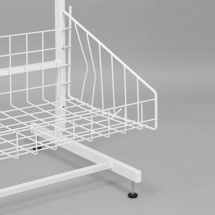 Стойка выполнена в белом цвете, что придает ей чистый и стильный внешний вид, который гармонично впишется в любой интерьер. Белый цвет создает ощущение легкости и аккуратности, подчеркивая продукцию и делая её более заметной для покупателей.